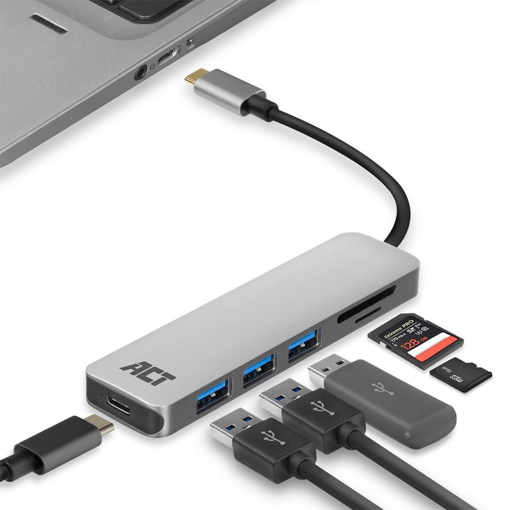 ACT AC7050 3-Poorts USB-C 3.2 Gen1 (USB 3.0) Hub met kaartle