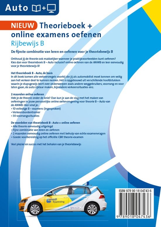 Onthoud jij de theorie ook makkelijker wanneer je praktijkvoorbeelden kunt oefenen? Kies dan voor theorieboek B - Auto inclusief online oefenen van de ANWB en leer eenvoudig voor je theoriebewijs B!