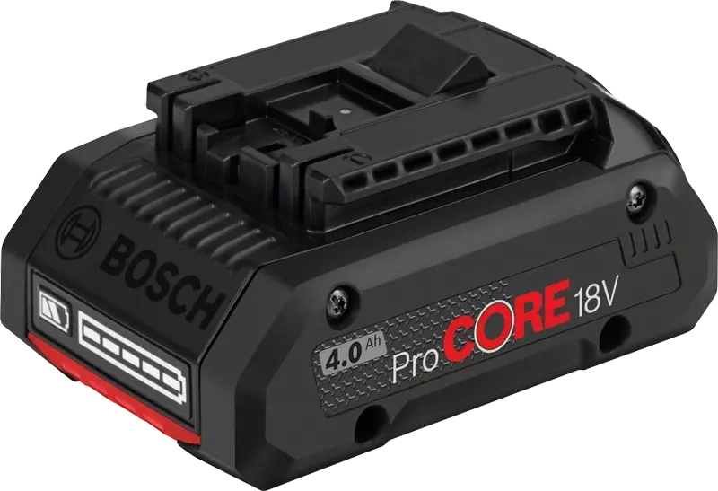 De Bosch ProCORE18V 4,0 Ah Professional accu biedt een perfecte balans tussen kracht en compact formaat. Dankzij de geavanceerde accucellen levert hij tot 1600 Watt aan vermogen en blijft hij toch licht en handzaam. Dit maakt hem ideaal voor zowel intensief als dagelijks gebruik met alle Bosch Professional 18V gereedschappen.