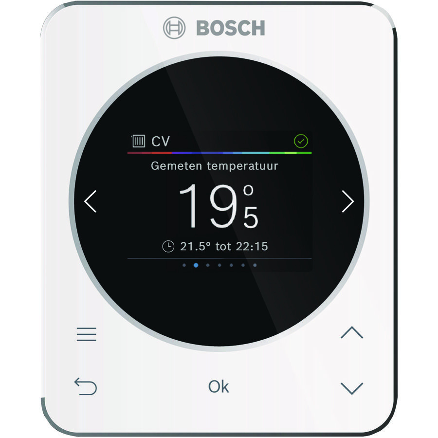De Bosch ruimtethermostaat RT 800 is bedoeld voor installaties waar je geen simpele draaiknopthermostaat wilt, maar een veel uitgebreidere en modernere regeling met kleurendisplay, klokprogramma en ondersteuning voor meerdere cv-circuits. Dit model fungeert als bediening op afstand en slimme ruimteregelaar binnen compatibele Bosch- en Nefit-systemen. Daardoor is het vooral interessant voor gebruikers die meer inzicht, meer comfort en een overzichtelijkere bediening willen bij een moderne cv- of verwarmingsinstallatie.