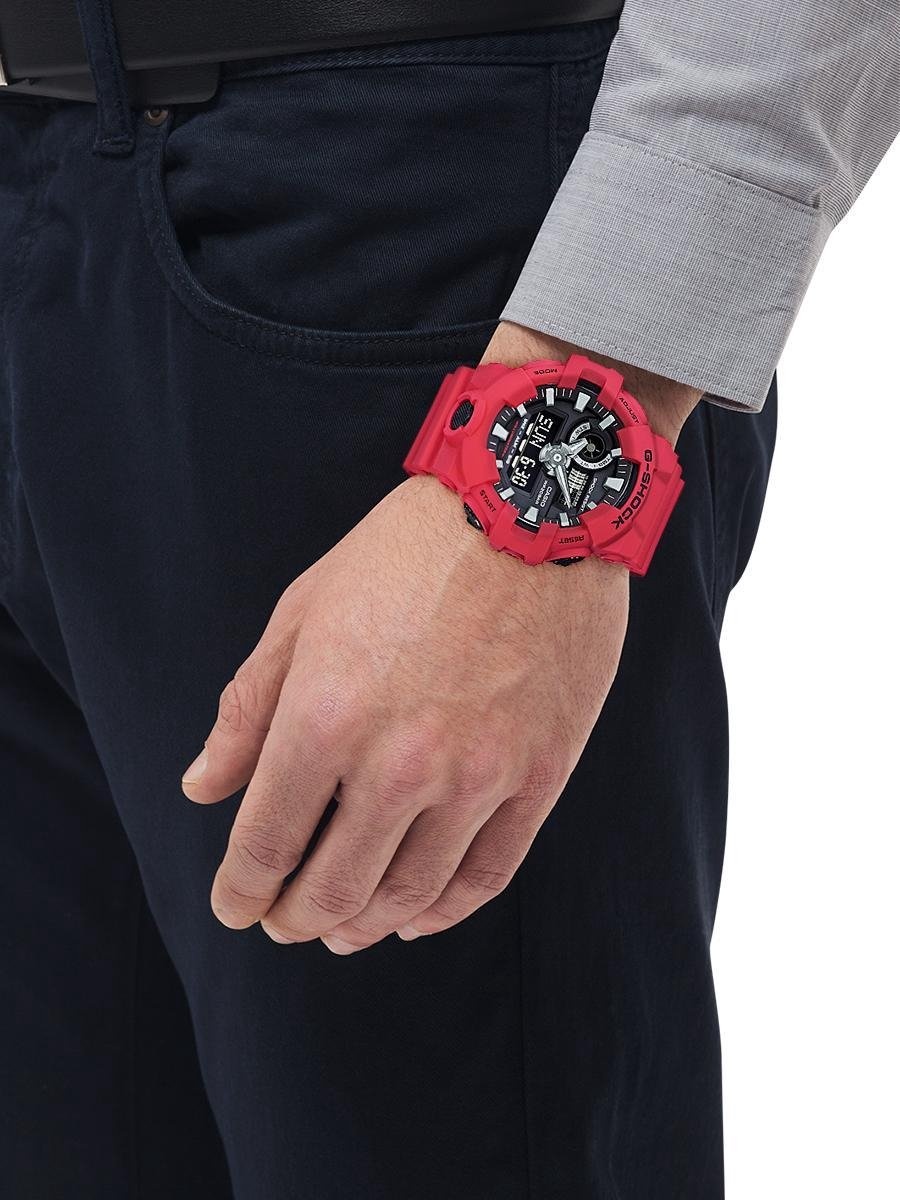 G-Shock GA-700-4AER: robuust, schokbestendig en opvallend rood. Met sterke verlichting, timer en stopwatch ideaal voor sport, werk en dagelijks gebruik.