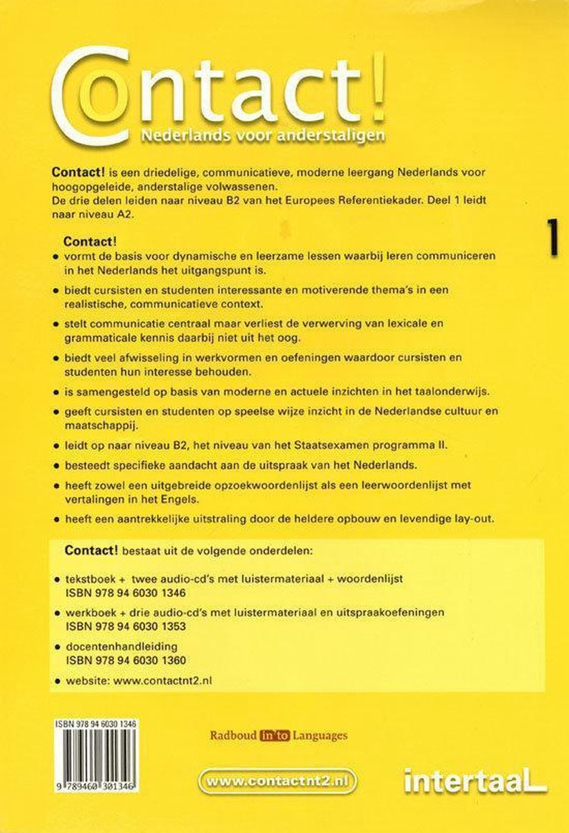 Met het Contact! 1 tekstboek leg je een stevige basis voor het leren van Nederlands. De combinatie van teksten, oefeningen, audio en woordenlijsten maakt het een compleet pakket voor de eerste stappen richting taalvaardigheid.