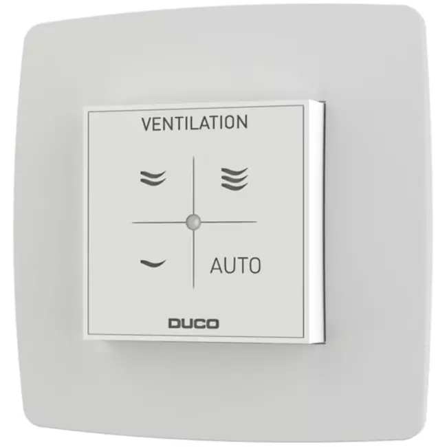 Bedien je Duco ventilatiesysteem eenvoudig met deze RF/Wired schakelaar in strak wit design.