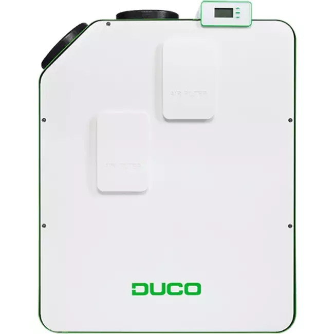 - Bediening: geïntegreerde display, Duco RF, Duco Wired, schakelcontact