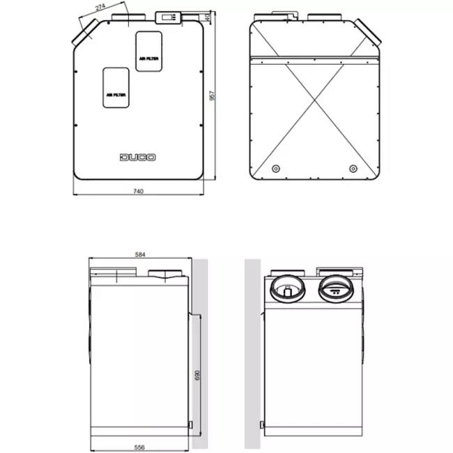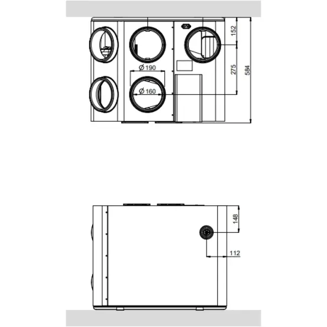 Duco WTW DucoBox Energy 325 1ZH - 1 zone sturing met heater - links - 325 m³/h