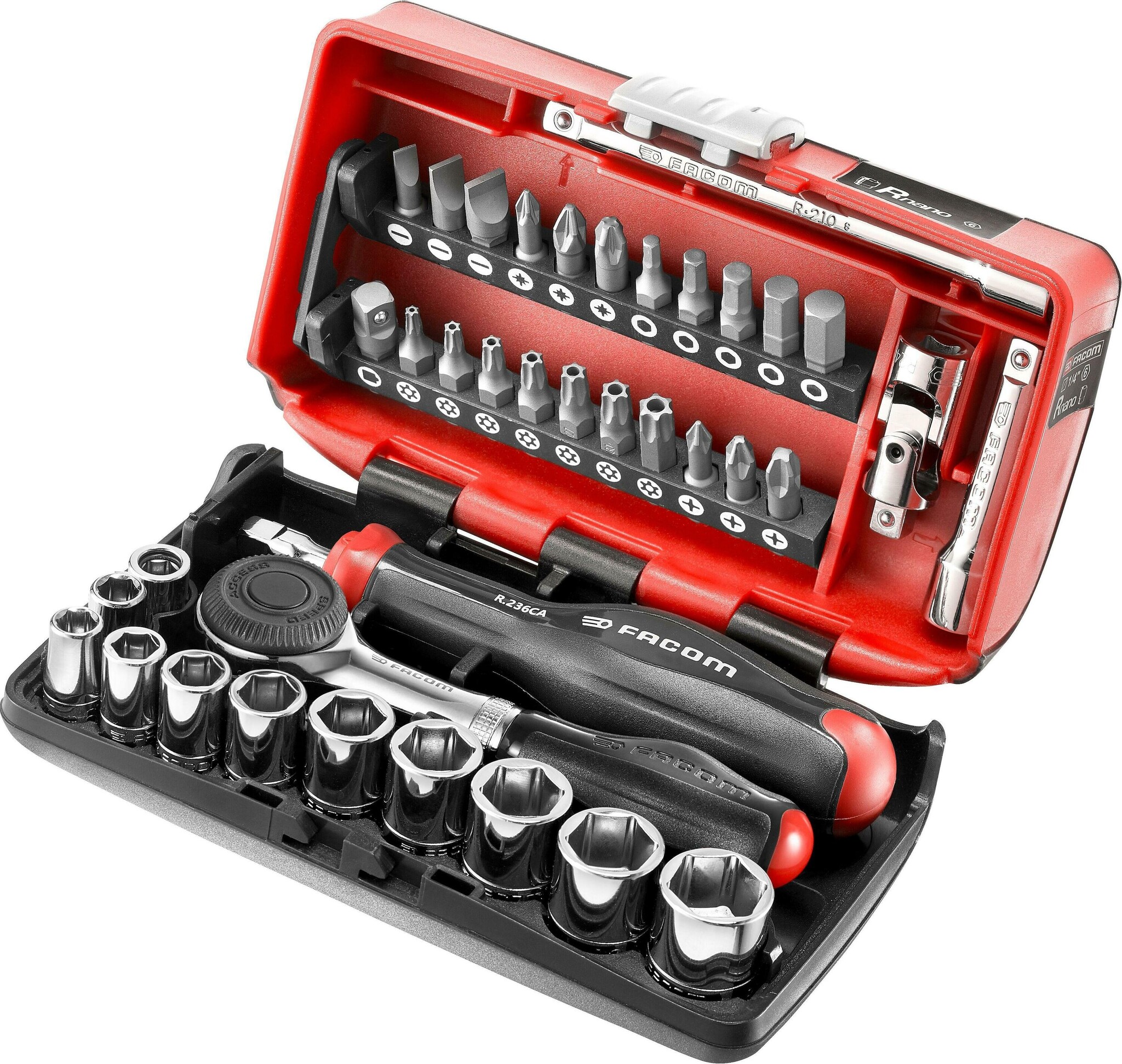 FACOM R.360NANOPB ratel R.360 met ultra compacte doppenset 6-kant 1/4" in opbergdoos 38-delig