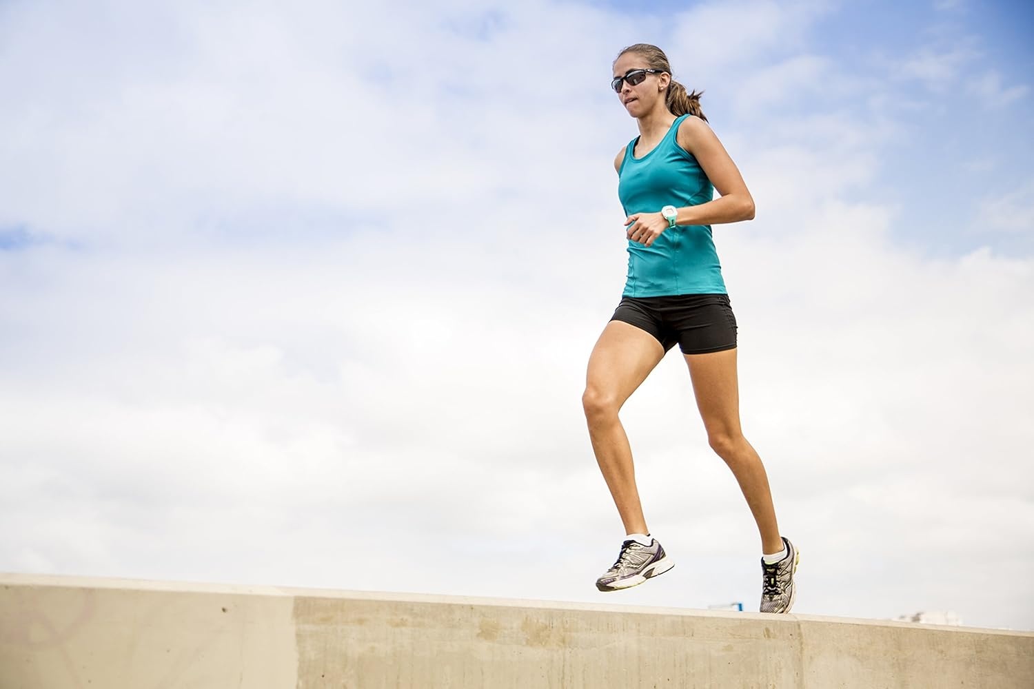 Compact GPS-hardloophorloge voor dames met hartslagband. Registreert afstand, tempo, tijd, calorieën en stappen. Waterdicht (5 ATM), tot ca. 8 u GPS-accu en weken in horlogestand. Inclusief HRM en USB-oplaad-/dataclip.