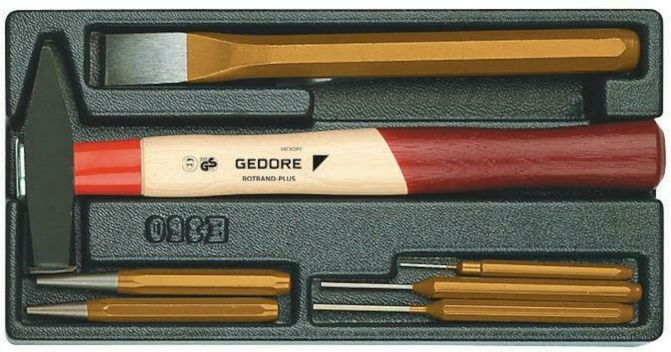 Professionele Gedore 6613760 1500 ES-350 hamer- en beitelset. Gemaakt van gehard staal voor precisie, kracht en duurzaamheid bij elk montage- of metaalwerk.