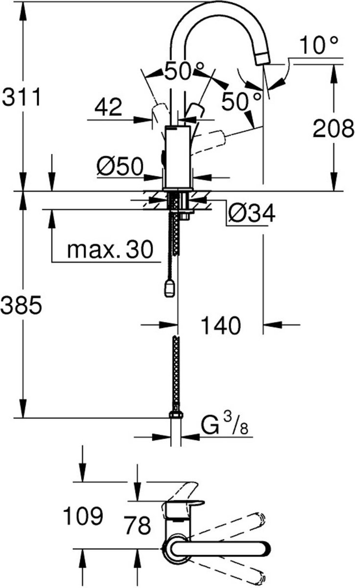 Grohe Eurosmart Wastafelmengkraan L-Size Chroom