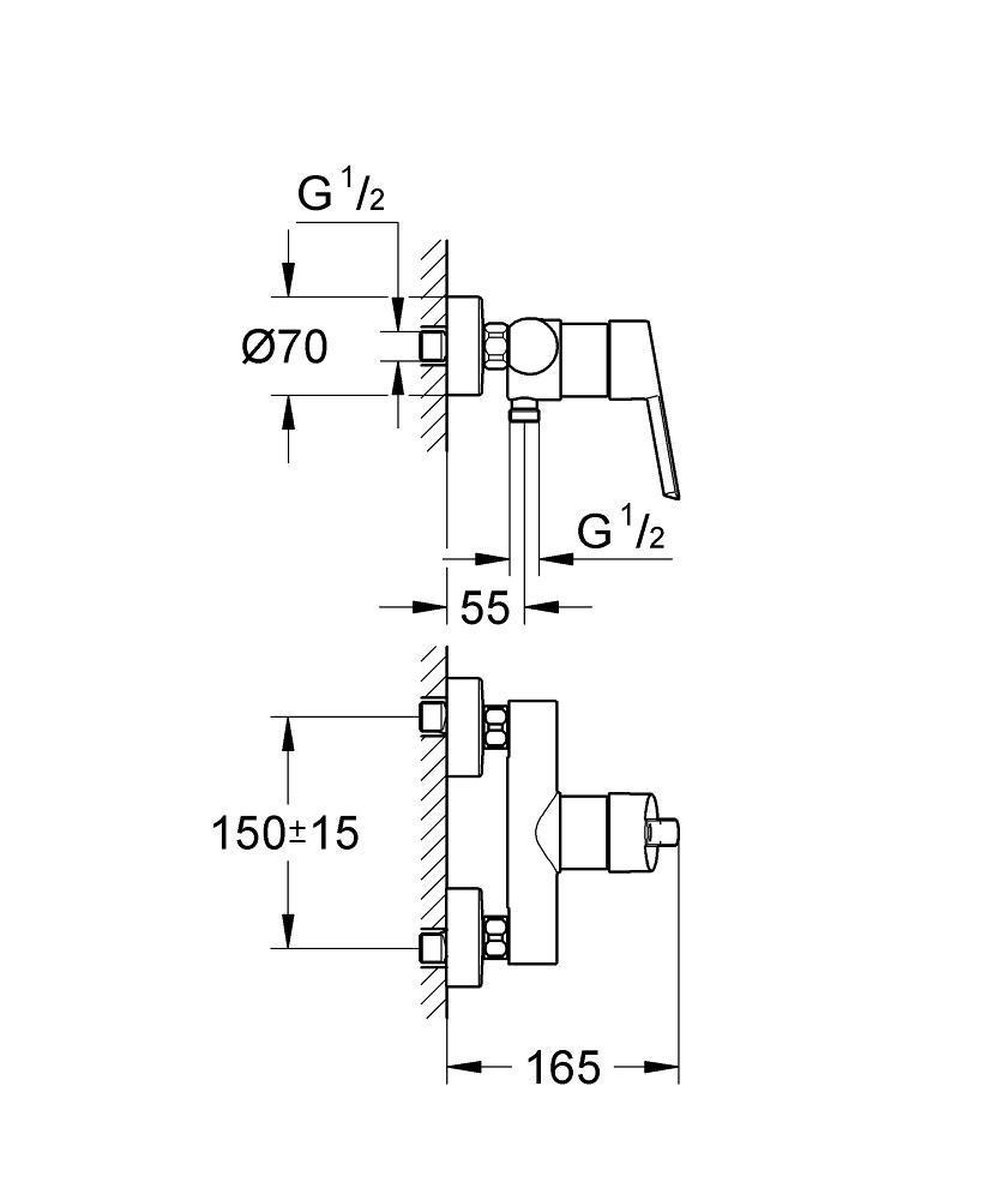 Strakke GROHE Feel eenhendel douchekraan voor wandmontage (hartafstand 15 cm). Soepele bediening, keramisch binnenwerk en duurzame chroomafwerking. Ideaal als vervanger of nieuwbouw. Aansluiting 1/2". Merk: GROHE. EAN 4005176834912.