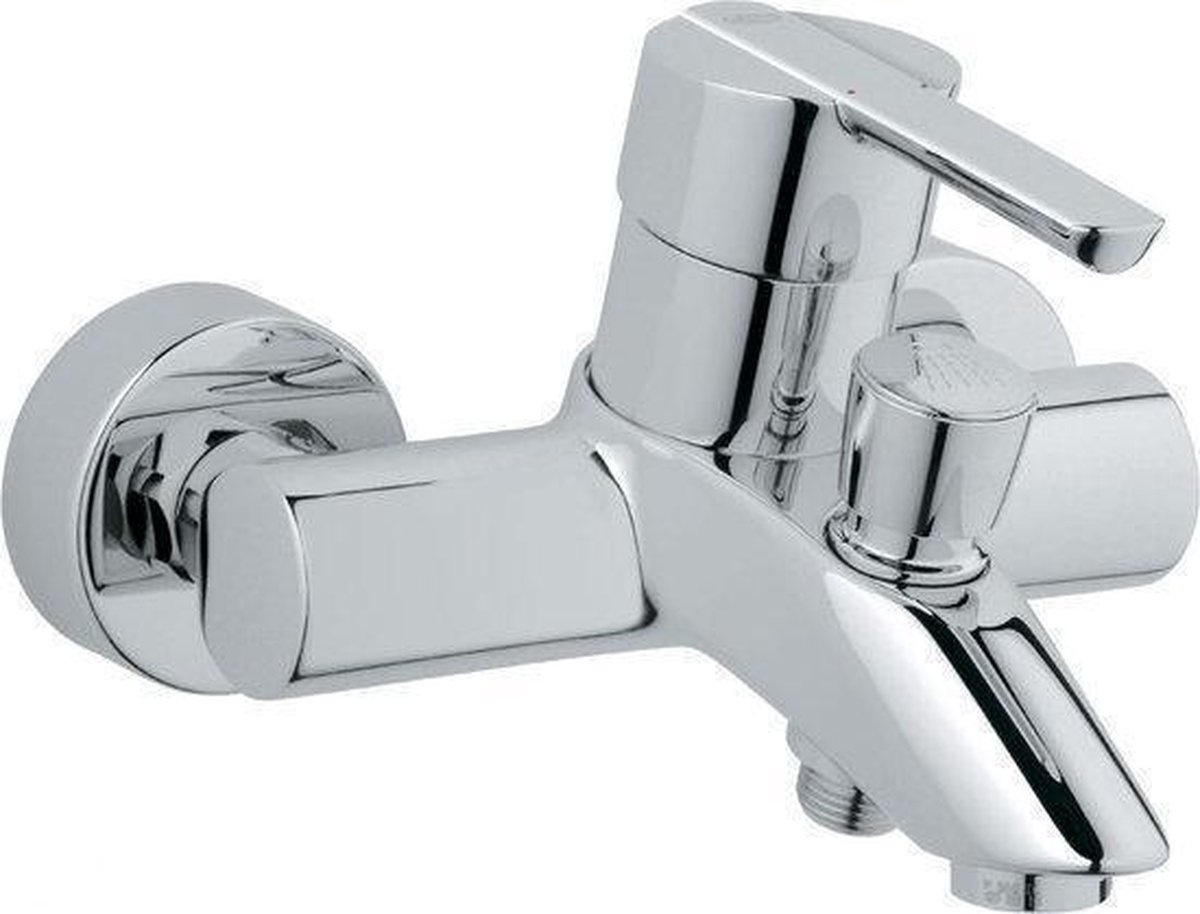 Strakke GROHE QuickFix Feel badkraan met 15 cm hartafstand. Soepele eenhendelbediening en duurzaam chroom. Ideaal als vervanger: snelle montage met S-koppelingen, rozetten en universele 1/2"-aansluitingen. Inclusief omstel voor handdouche. Merk: GROHE.