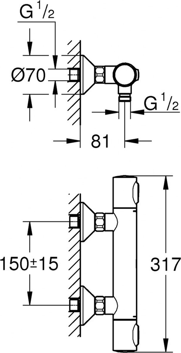 GROHE Precision Flow douchethermostaat met S-koppelingen 15 cm