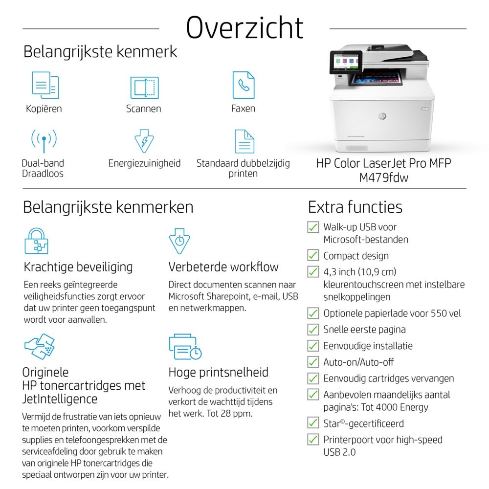 HP Color LaserJet Pro MFP M479fdw, Printen, kopiëren, scanne