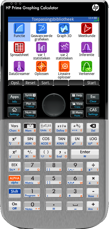 De HP Prime grafische rekenmachine is uitgerust met een helder bedieningsconcept. Deze bestaat uit drie basiscomponenten, die kunnen worden geopend met de toetsen Apps, Home en CAS.