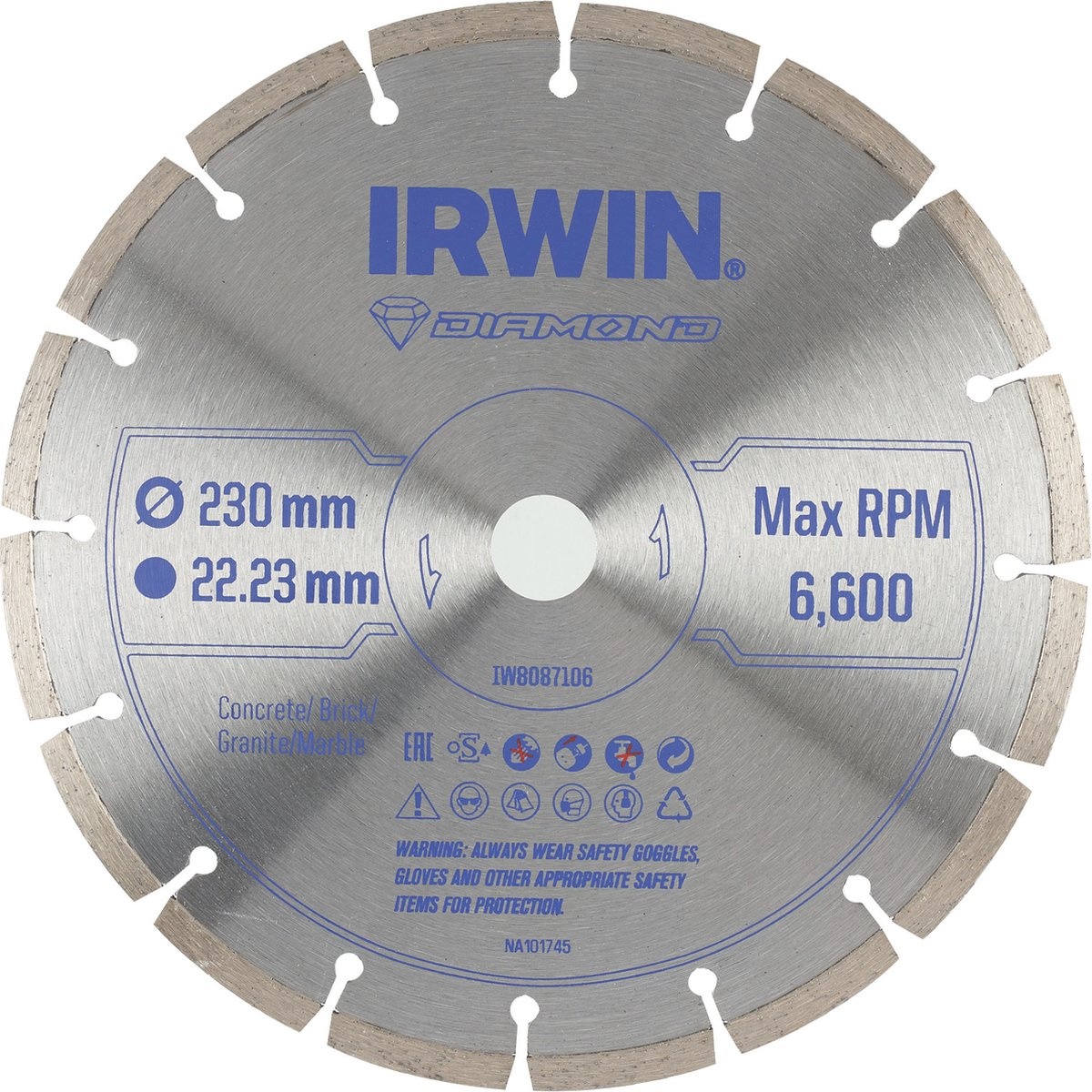 Irwin diamantschijf voor haakse slijper Ø230 mm. Voor kermamiek