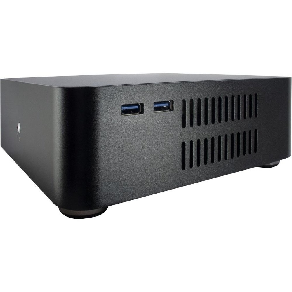 Inter-Tech ITX A60. Vormfactor: Mini Tower, Soort: PC, Kleur van het product: Zwart. Netvoeding: 60 W, Vermogenstoevoer locatie: Extern. Ondersteunde HDD-groottes: 2.5". Breedte: 200 mm, Diepte: 200 mm, Hoogte: 73 mm. Meegeleverde kabels: AC, Breedte verpakking: 135 mm, Diepte verpakking: 240 mm
