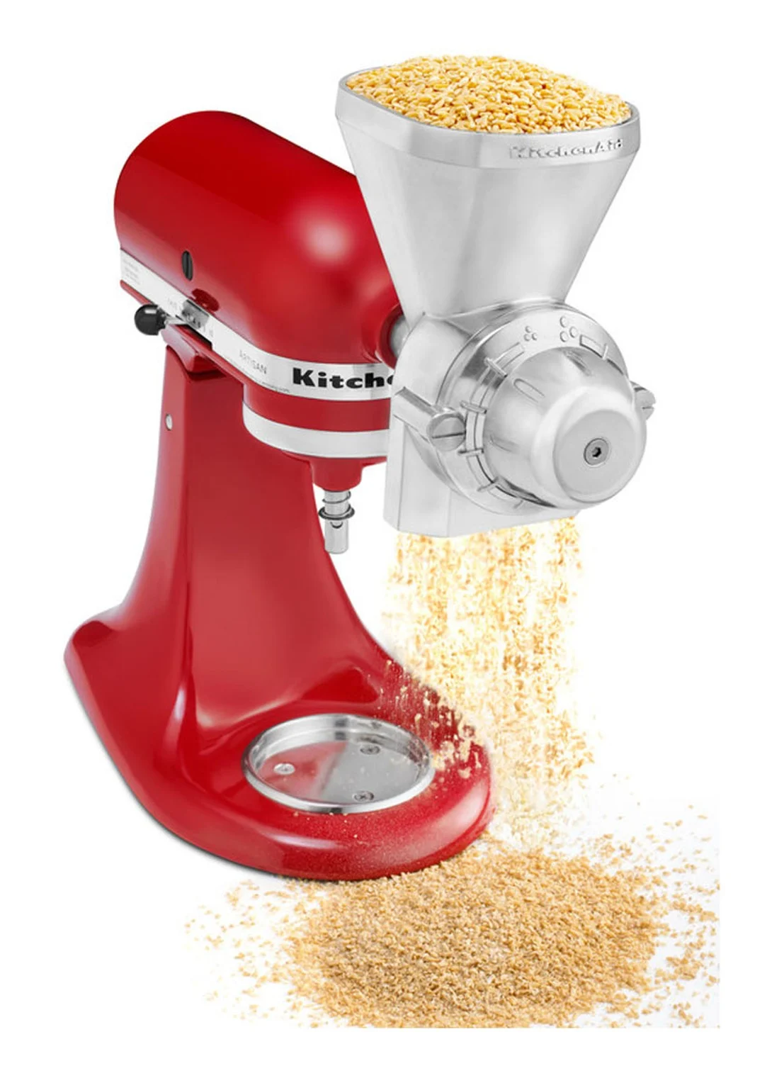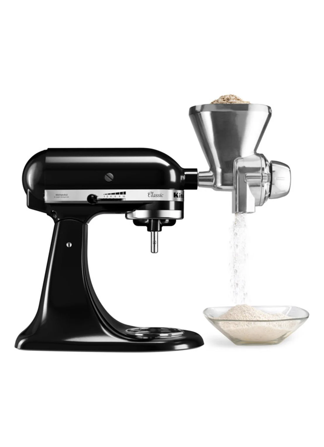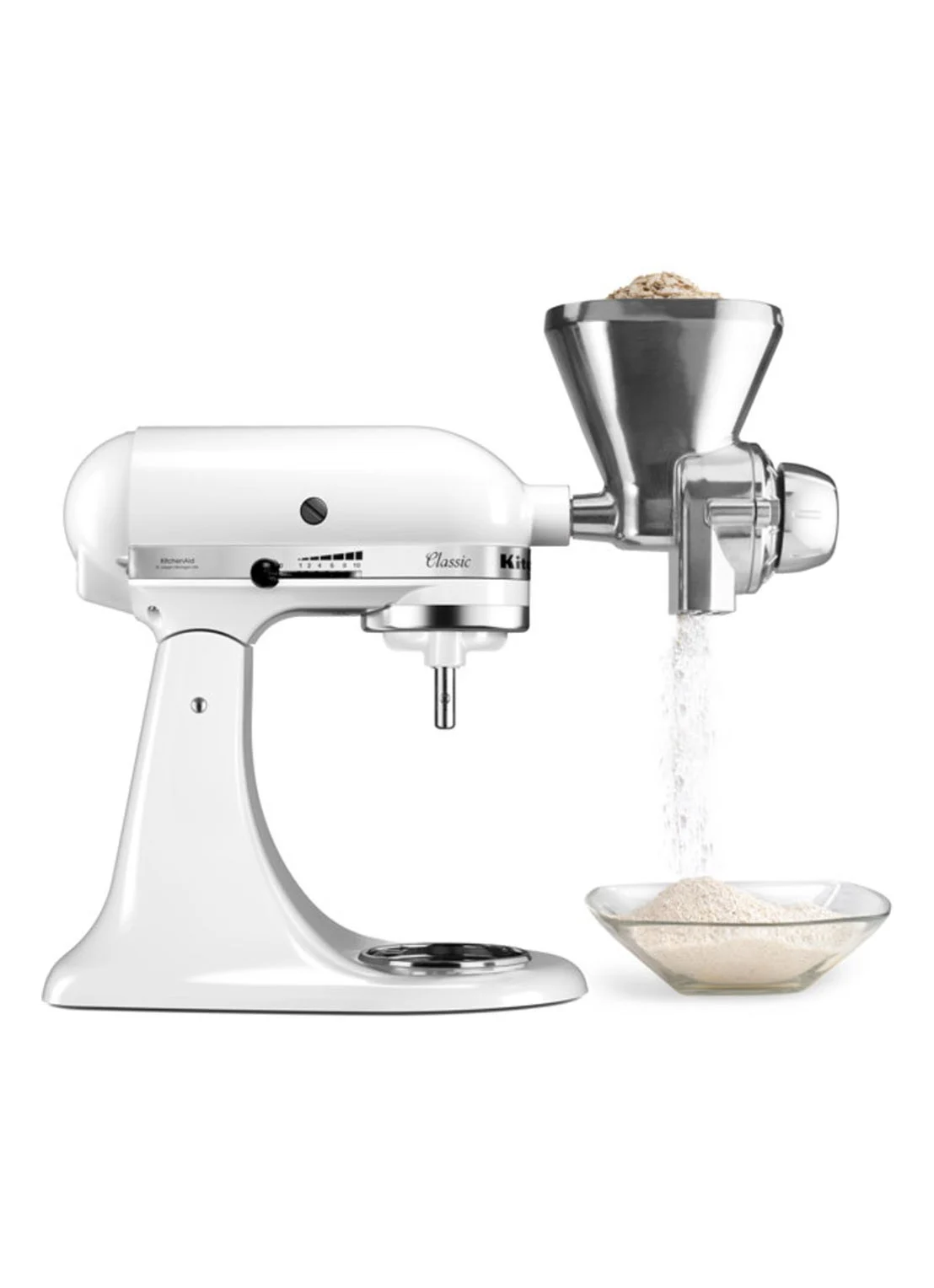 Met de KitchenAid 5KGM graanmolen maal je tarwe, maïs en andere granen van grove cracked wheat tot fijn volkorenmeel. De metalen molen bevestig je eenvoudig op de aandrijfas van je standmixer.