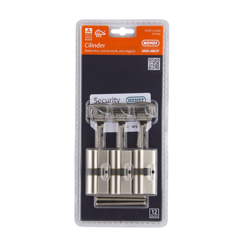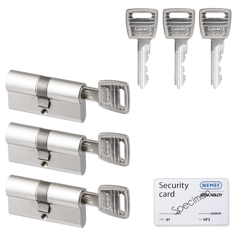 Nemef veiligheidscilinder 30/30 mm SKG 3-sterren gelijksluitend (3 stuks)