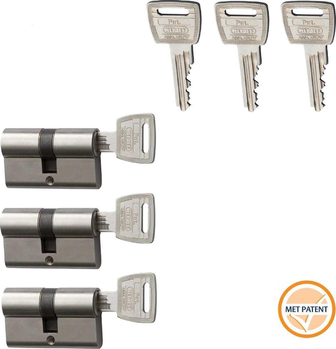 - 3× Nemef NF3+ veiligheidscilinder 30/30 mm (gelijksluitend)