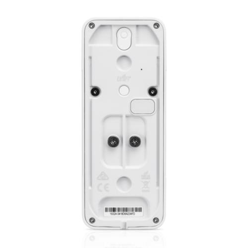 Ubiquiti Networks Protect G4 Doorbell. Kleur van het product: Zwart, Wit, Beste gebruik: Thuis, Kantoor, Materiaal behuizing: Polycarbonaat (PC). Megapixels: 2 MP, Maximale videoresolutie: 1600 x 1200 Pixels, Maximale beeldsnelheid: 30 fps. Connectiviteitstechnologie: Draadloos, Wi-Fi-standaarden: 802.11a. Type stroombron: AC, Ingangsspanning: 16-24 V, AC-ingangsfrequentie: 50/60 Hz. Breedte bel: 4,68 cm, Diepte bel: 2,58 cm, Hoogte bel: 11,8 cm