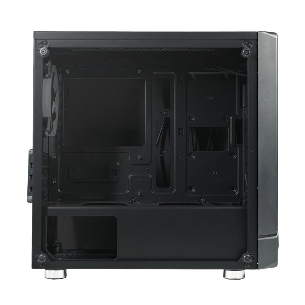 Met zijn bodemgeplaatste voeding en ondersteuning voor ATX-voedingen biedt de Azza Noir een handige en efficiënte stroomtoevoer. De ventilatieopties zijn indrukwekkend, met een geïnstalleerde 120 mm ventilator aan de voorzijde en een 120 mm ventilator aan de achterzijde, waardoor een optimale luchtstroom wordt gegarandeerd.