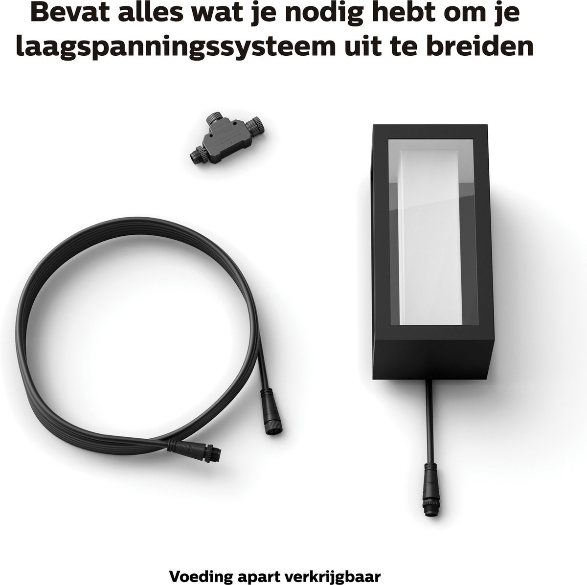 - Geschikt / Niet geschikt – geschikt: buitenmuur, schutting; niet geschikt: zonder Hue Bridge of vaste voeding