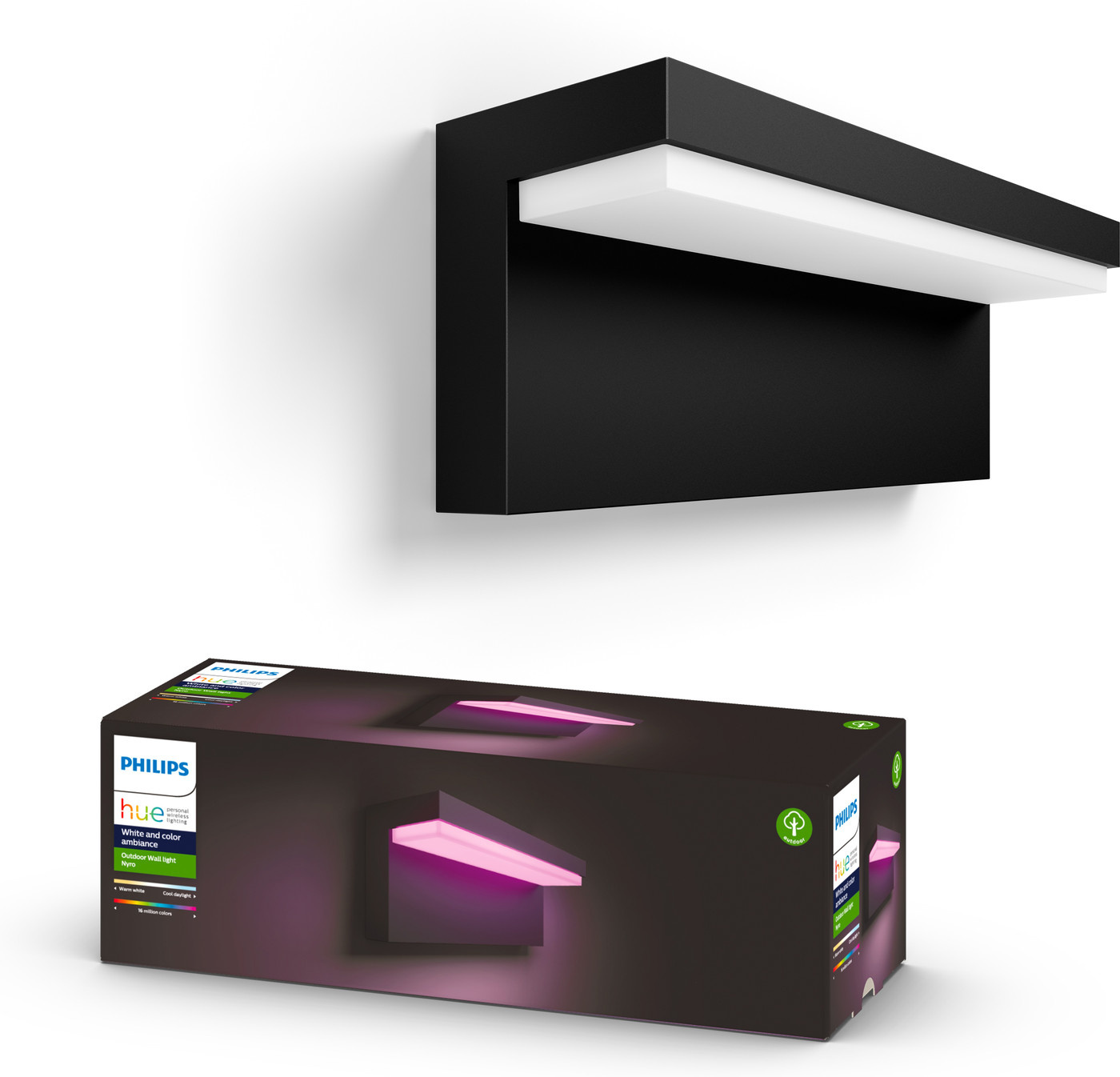 De Philips Hue Nyro muurlamp in zwart combineert modern design met slimme verlichtingstechnologie. Met White and Color Ambiance creëer je miljoenen kleuren en wittinten, perfect voor elke gelegenheid. Bedien de lamp eenvoudig via de Hue app, spraakassistenten of automatiseringen. Dankzij de IP44-classificatie is de lamp weerbestendig en geschikt voor buitengebruik.