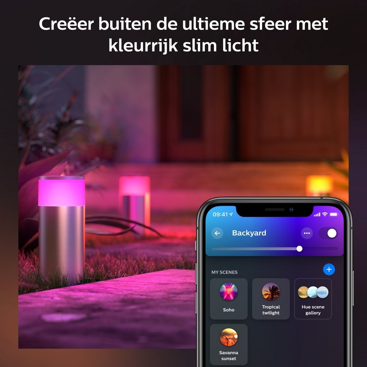 - 1x Philips Hue Calla tuinsokkel (RVS-look)