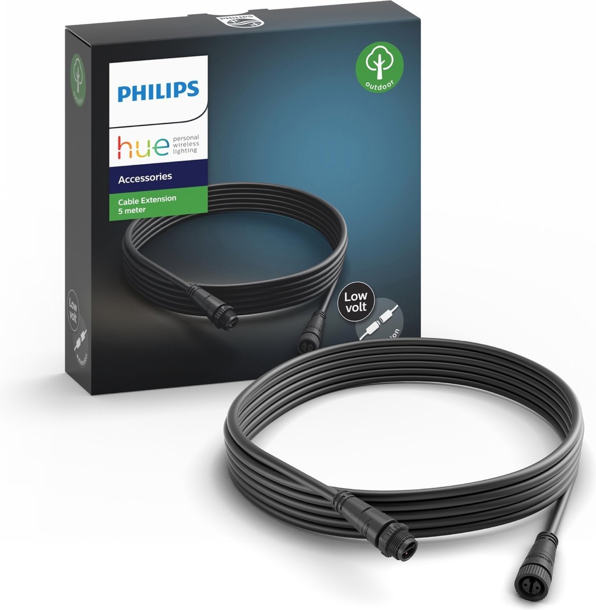 Philips Hue Outdoor verlengkabel van 5 meter voor uitbreiding van je Hue buitensysteem. Geschikt voor low-voltage Hue Outdoor armaturen, spatwaterdicht en ideaal om lampen verder bij de voeding vandaan te plaatsen.