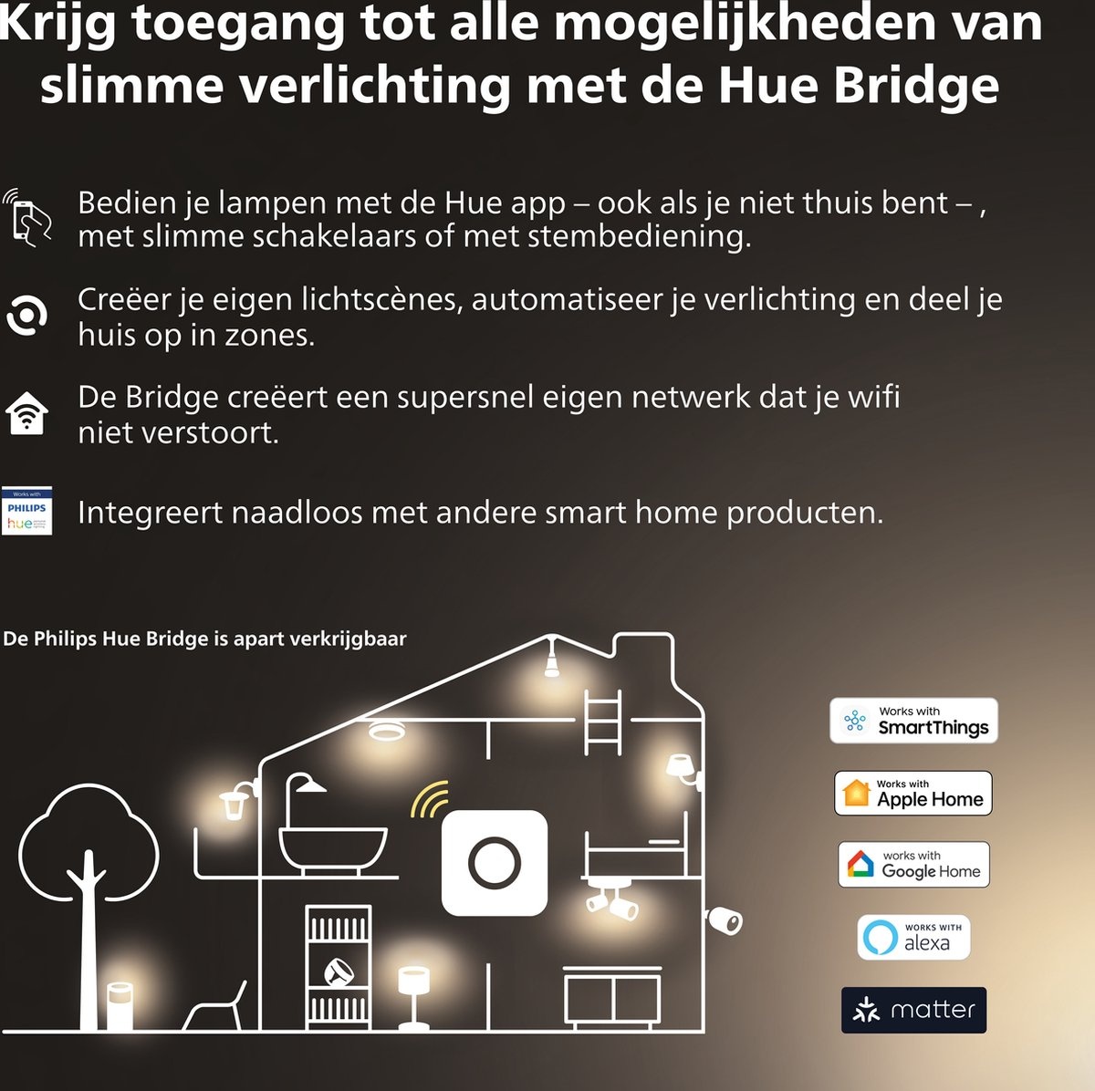 | Connectiviteit | Bluetooth en Zigbee via Hue Bridge |