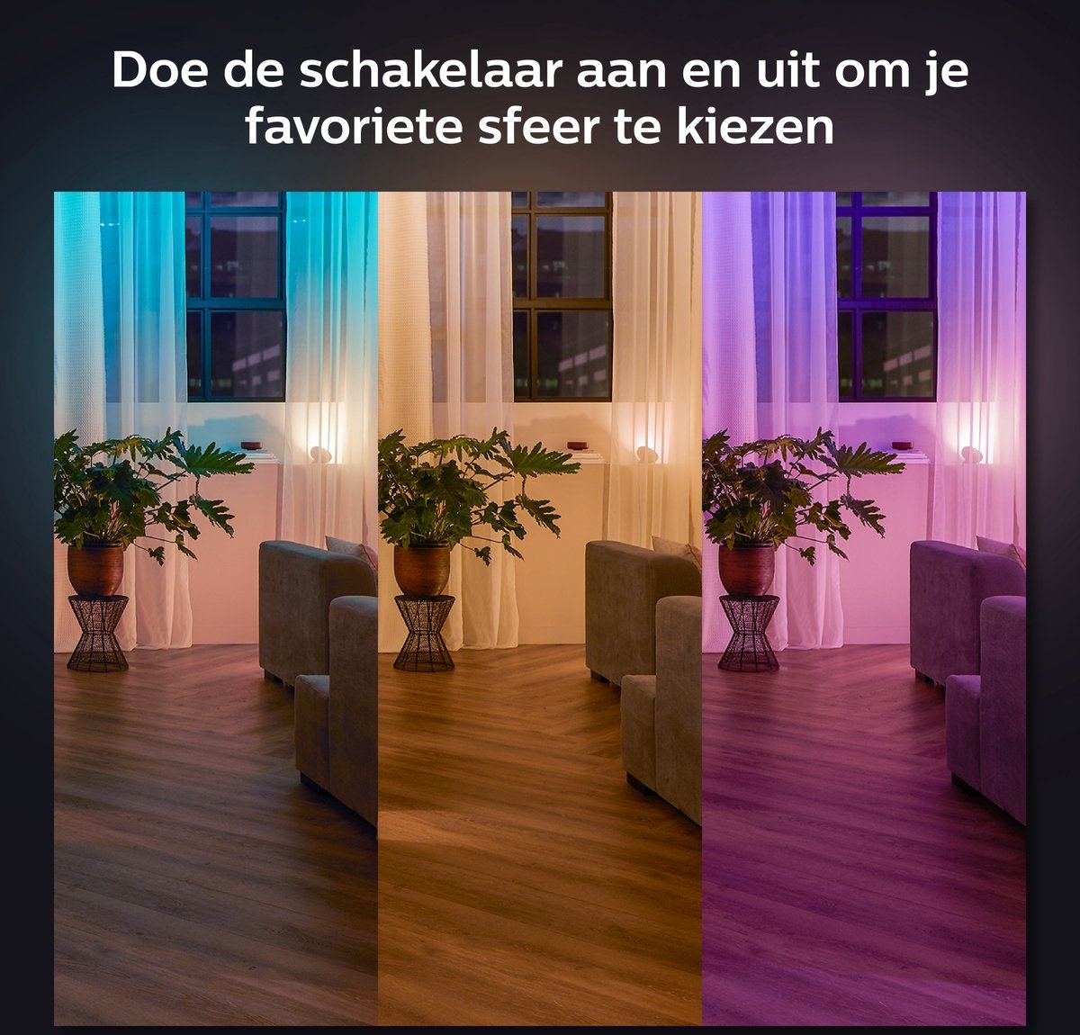| Bediening | Acties instelbaar in Hue app (aan/uit, dimmen, scènes) |