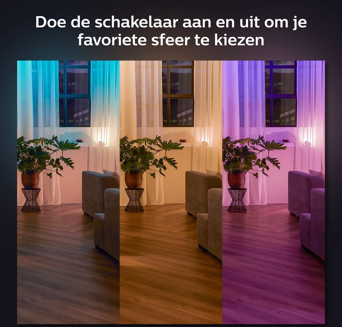 - PCman tip: Ideaal in kinderkamers: kinderen gebruiken gewoon de schakelaar, terwijl jij via de app dimstanden en bedtijdroutines instelt.