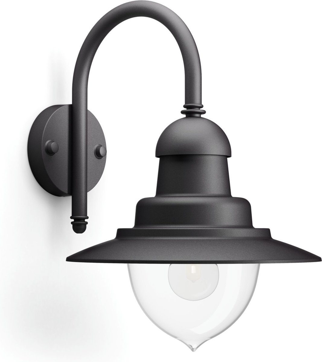 Philips myGarden Raindrop buitenwandlamp in zwart. E27-fitting (max. 60W) zodat je zelf de (dimbare) lamp kiest. Weerbestendig, eenvoudig te monteren en ideaal voor sfeervolle of functionele verlichting bij voordeur, terras, tuinpad en oprit.
