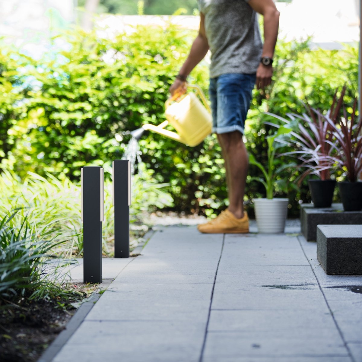 - Slanke bollard van 77 cm voor een gelijkmatige lichtverdeling langs paden en borders