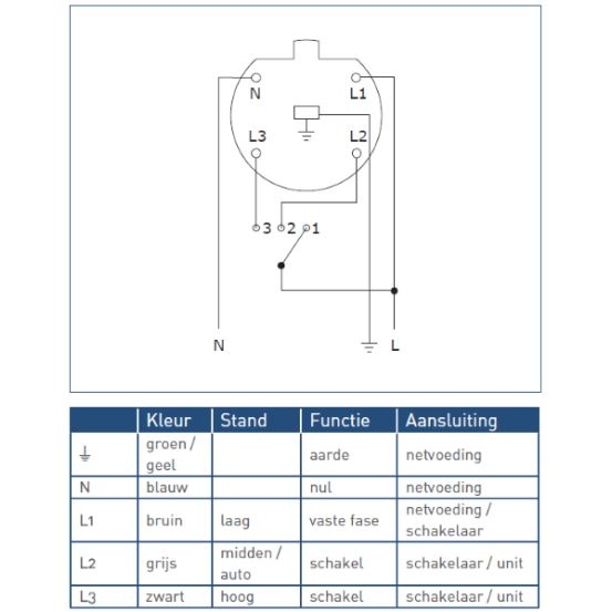 | Bediening | Automatische vochtsensor plus standenschakelaar (afhankelijk van installatie) |