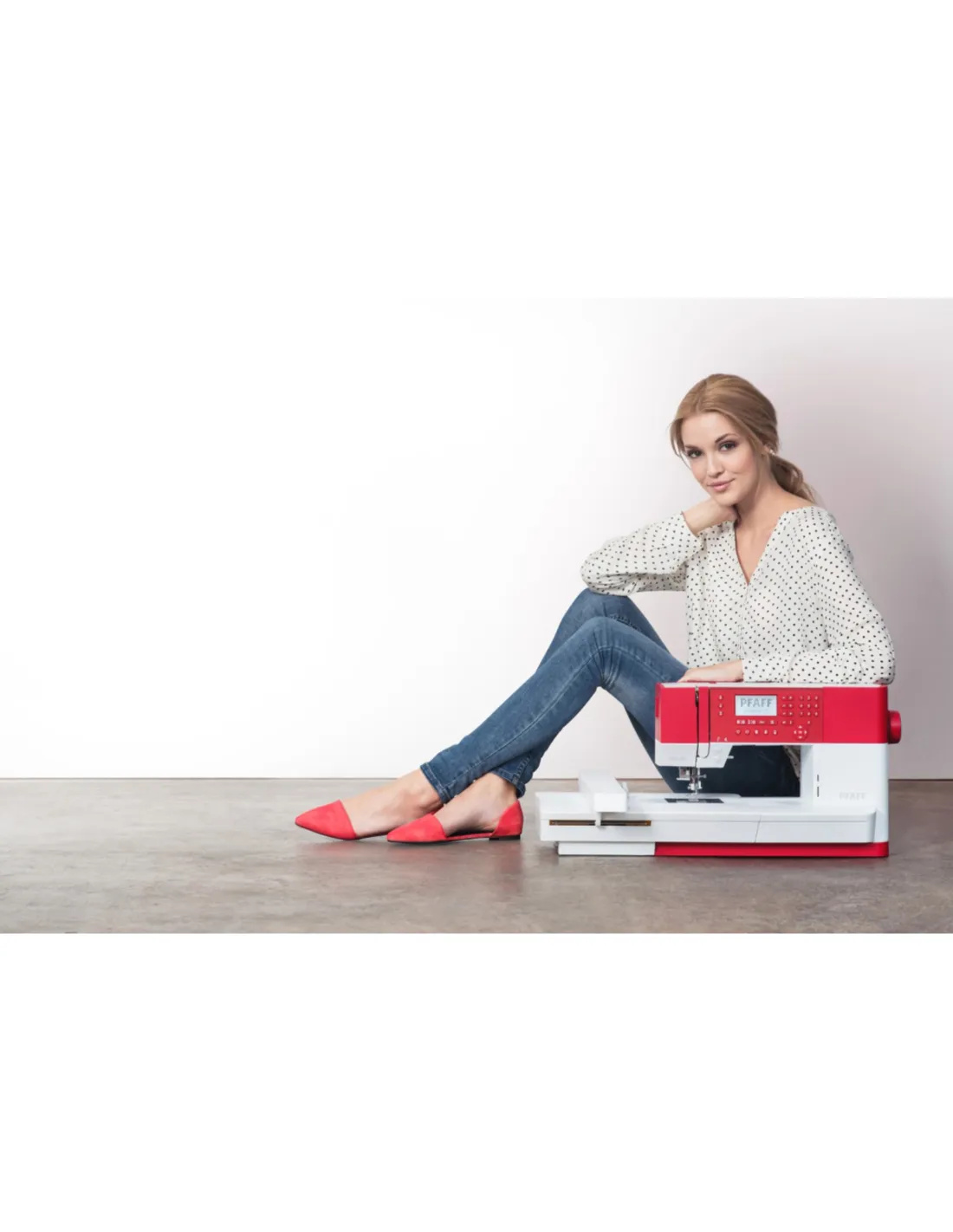 - Origineel PFAFF IDT dubbeltransport: gelijkmatige stofdoorvoer van boven en onder voor strakke naden.