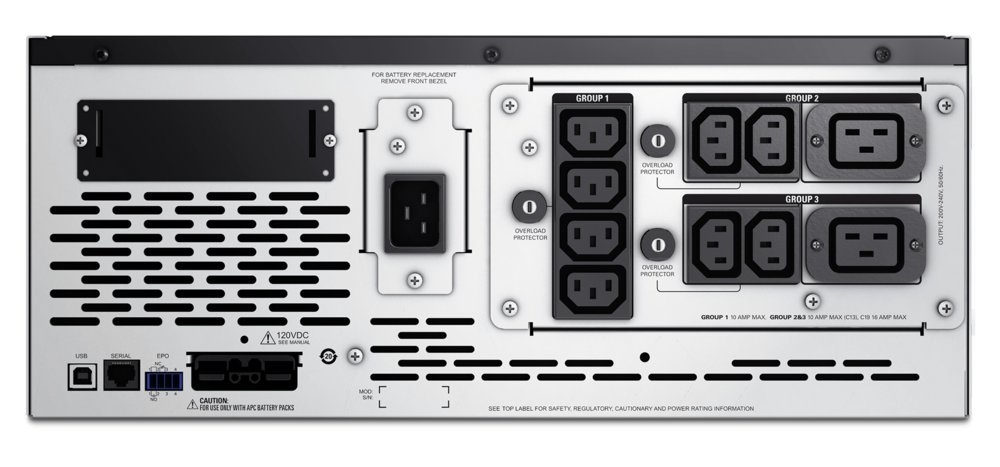 De APC Smart-UPS SMX is rack/tower convertible. Doordat zowel de voetjes als de front post rackbrackets worden meegeleverd, kun je hem dus in een rack monteren of rechtop plaatsen. Monteer je hem liever aan alle vier de stijlen van het rack, bestel dan de optionele SU032A mee.