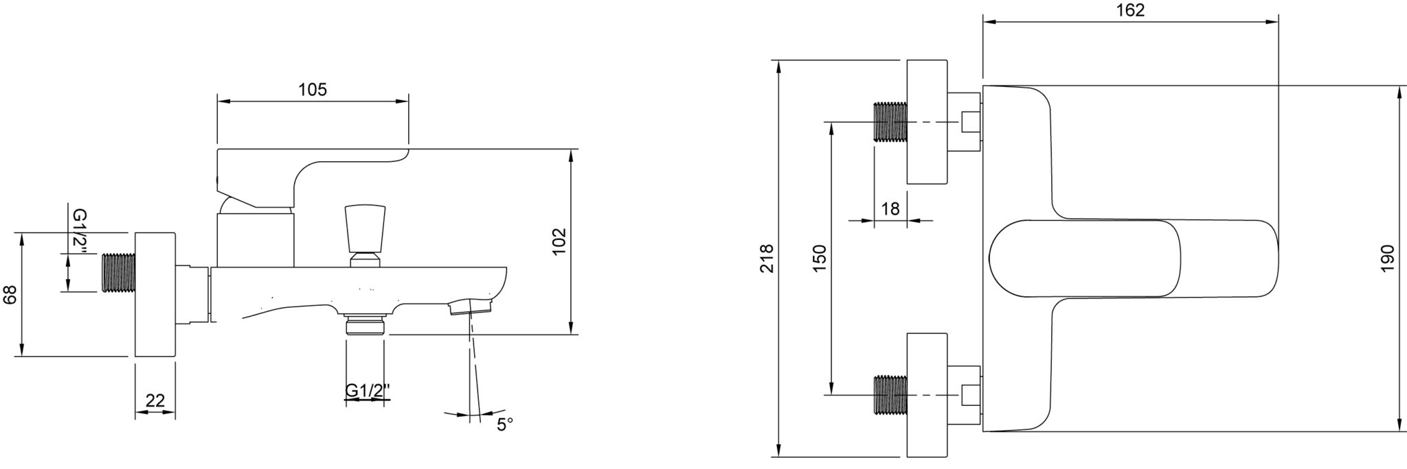 - Geschikt als vervanger van een bestaande badkraan met 150 mm hartafstand.