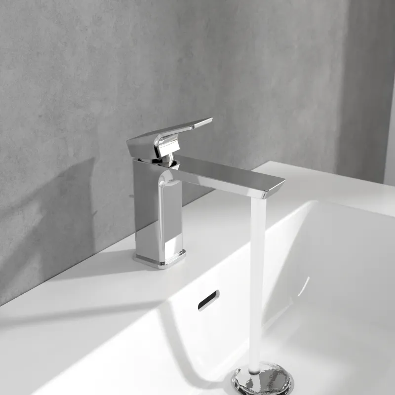 - Geschikt voor: moderne en tijdloze badkamers, wastafels met 1 kraangat, situaties waar een geïntegreerde afvoerbediening gewenst is.