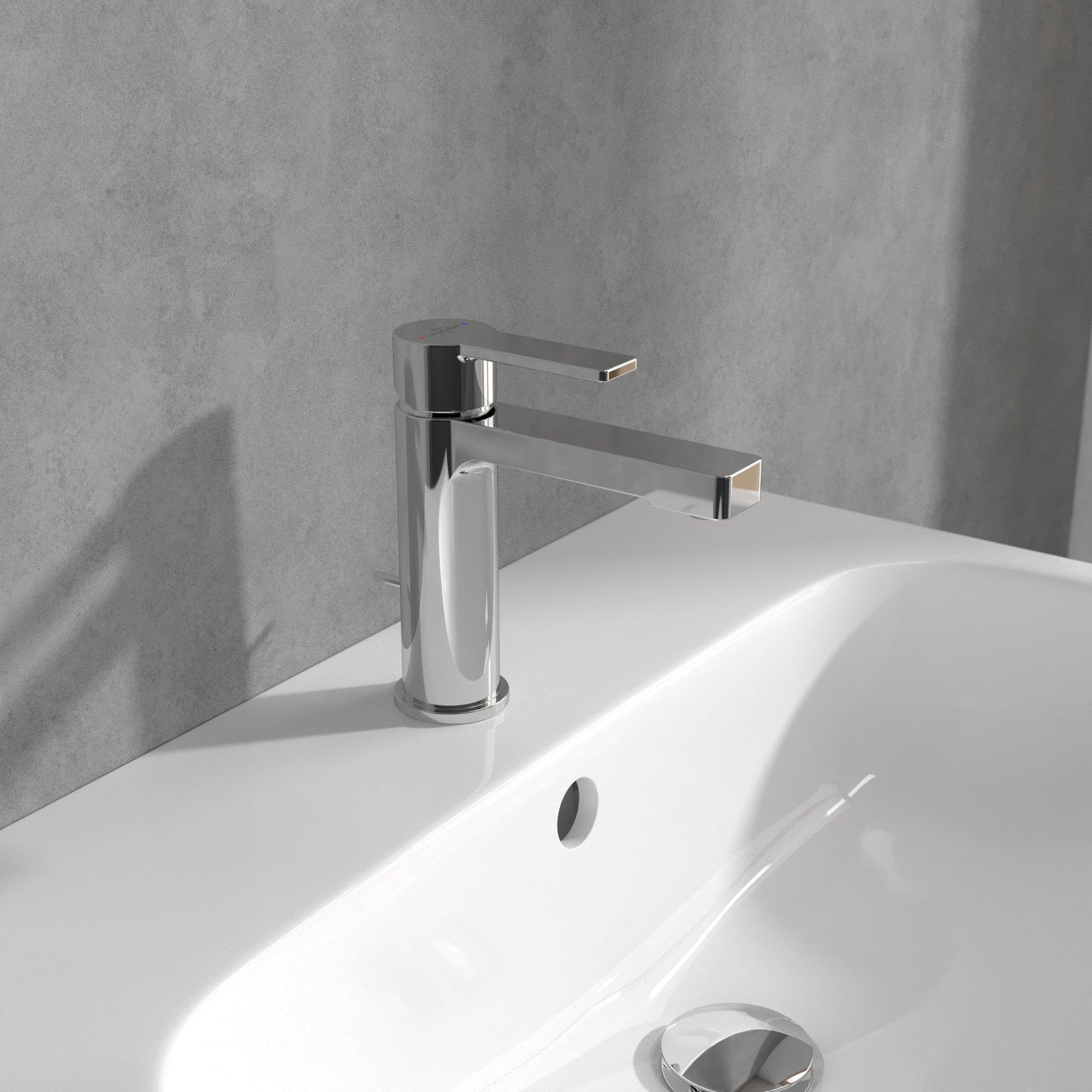 De Villeroy en Boch Architectura wastafelkraan is ontworpen voor badkamers waarin rechte lijnen en rust centraal staan. De slanke uitloop en minimalistische hendel sluiten naadloos aan op moderne wastafels en meubelen. Dankzij de gentegreerde trekstang bedien je de afvoer discreet van bovenaf, zonder zichtbare dopjes of hendels in de wastafel. De hoogwaardige binnenwerken zorgen voor een soepele, precieze regeling van temperatuur en doorstroming, zodat elke handwas en gezichtsspoeling comfortabel aanvoelt.