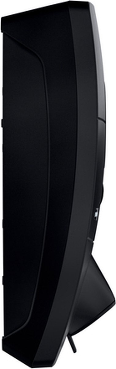 - Moderne zwarte uitvoering die strak oogt op gevel, paal of parkeergaragewand.
