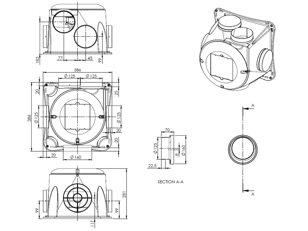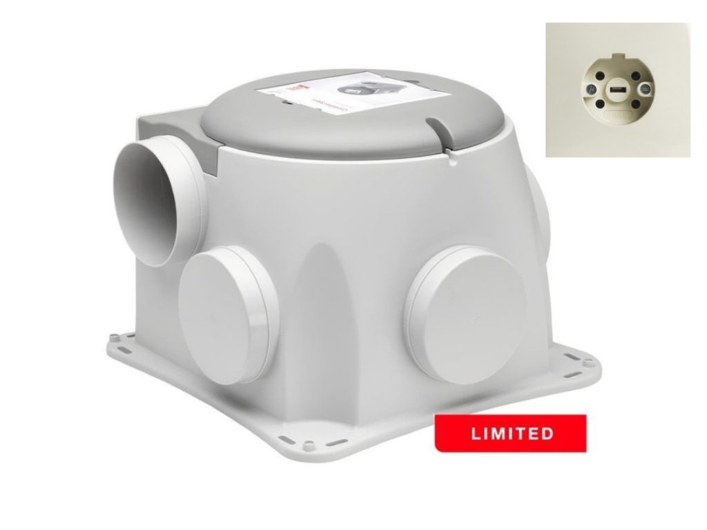 Krachtige en stille mechanische ventilatiebox voor woningventilatie. Met 300 m³/h capaciteit en Perilex-aansluiting voor snelle vervanging of upgrade.